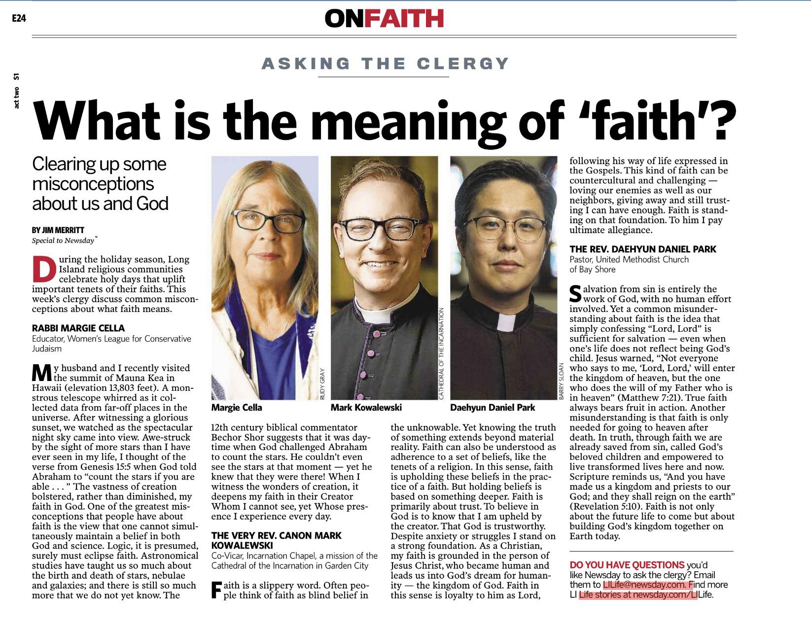 Recently, I was asked to provide answers to faith related questions that were published in Newsday. Here are questions and links to the answers: